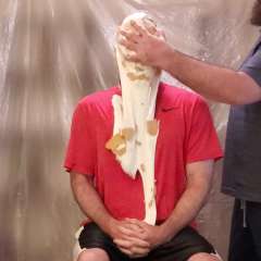 Garakguy47 was surprised by MessyLady_v2 with a big sloppy cream pie to the face